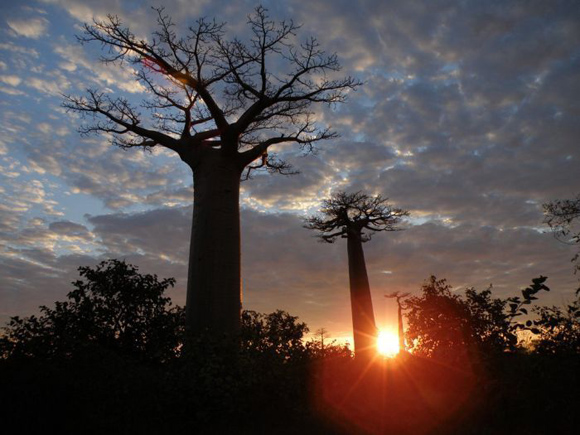Baobab tree is famous for its unusual proportions. This is one of the thickest tree in the world - with an average circumference of the trunk 10.9 meters, height of 18-25 m (in the “Guinness Book of Records” for 1991 describes the baobab tree, which had a 54.5 m in circumference). At the top of the trunk is divided into thick, almost horizontal branches forming a large, up to 38 m in diameter, crown. In the dry season in winter, when the baobab clears leaves, he takes a curious form of the tree roots growing up. Life expectancy of the baobab is controversial - they do not tree rings, which can reliably calculate the age. Performed by the method of radiocarbon analysis (14C) counts showed more than 5500 years for a tree with a diameter of 4,5 m, although more conservative estimates baobabs live “only” 1000 years.