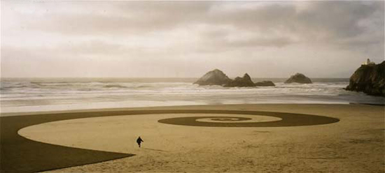 Jim Denevan draws in the sand. Something special feature where you will not find, but the scale is staggering.
